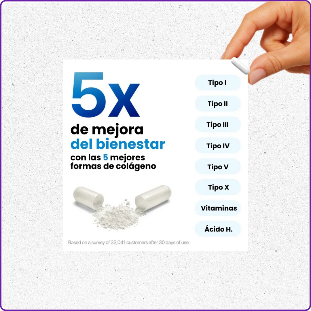 La mayoría de suplementos de colágeno usan 1–2 tipos y dosis poco claras.